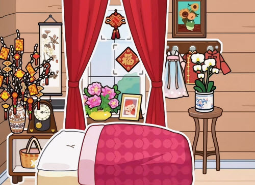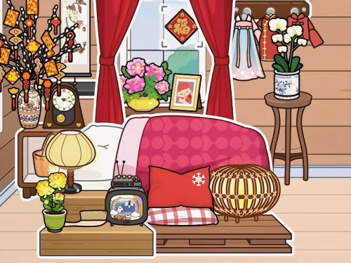 1、2024春节限定版本,这个版本有大量的春节装饰,如对联、中国结以及其他很喜庆的物品。