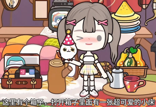 6、接着来到书屋,打开这里的箱子,会发现里面有一个小巧可爱的床哦