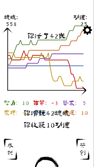 2、属性提升:玩家可借助积累功德来强化自身的初始属性,从而为后续的人生历程奠定良好基础。