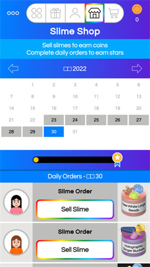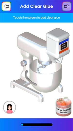2、时间实时同步更新,每天都会有不一样的粘液订单,点击“Sell Slime”选项,就能进入制作界面:按照提示,先挑选一个搅拌机,然后点击屏幕添加透明胶水。