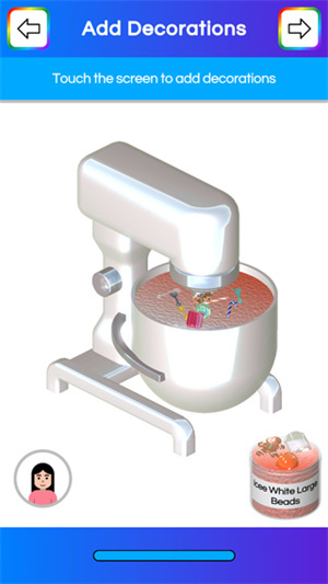4、现在进入装饰环节,可挑选一种或多种装饰类型,像脆脆颗粒、珠子、立方体造型物、水果碎等,以此来完成粘液的装饰步骤。