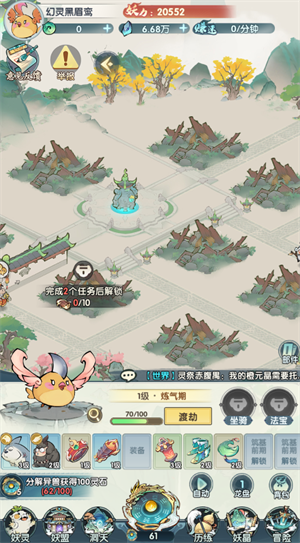 小妖别打了是一款画风独特的放置类游戏,它为玩家带来了一个既轻松又充满策略性的游戏体验。在这个游戏中,你可以收集各种风格迥异的小妖角色,它们从古灵精怪的森林精灵到威严庄重的山海巨兽,每一种都有其独特的魅力和能力。游戏的玩法简单而富有深度,玩家需要合理布局洞府设施来提升修炼效率,完成宗门任务来获得贡献值和珍贵物品,同时根据自己的角色属性和战斗风格搭配适宜的功法,以实现战力的最大化。