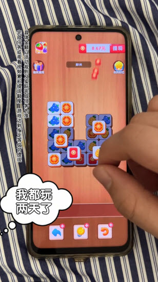 游戏中玩家只要完成消除挑战以及观看视频广告都能免费领红包,红包按照百分比来提现,轻松获得0.3!