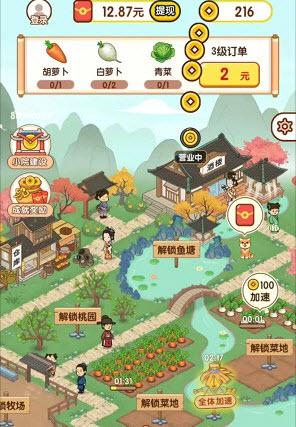 1、经典的田园种植题材小游戏,古风画面,画质相当的出色。超多的蔬菜种植都能解锁,如番茄、辣椒、西瓜、南瓜、白菜、包菜等等。