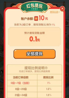 3、所有的红包都是真实可提的,按照百分比来提现,秒到!