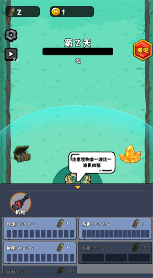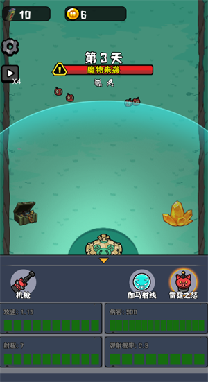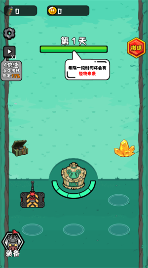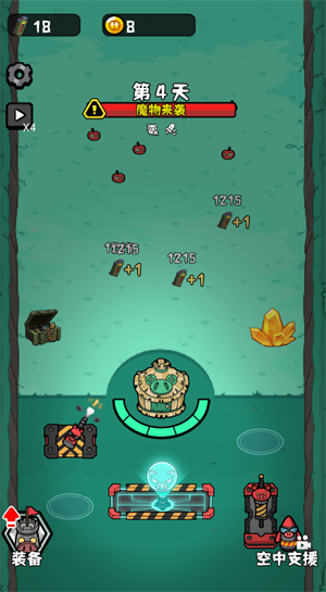 3、每隔一段时间就会有怪物来袭,怪物来袭期间猪猪会停止收集