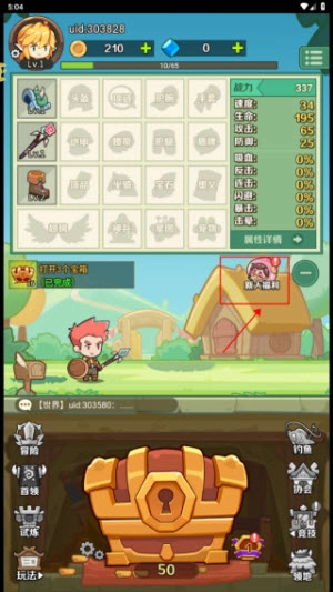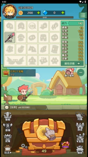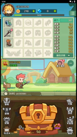 在游戏主界面找到“宝箱”按钮并点击,系统会自动开启宝箱并获得各类装备与武器。