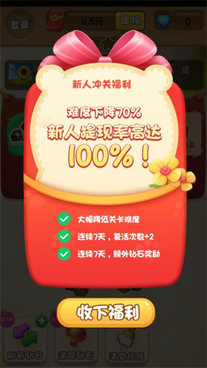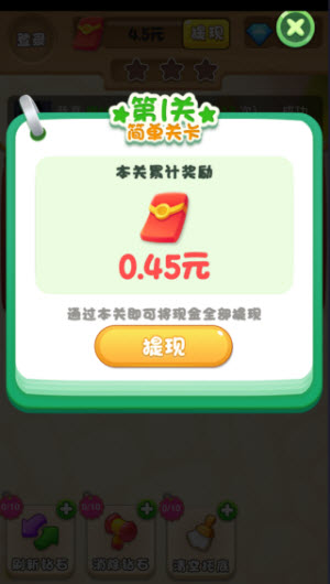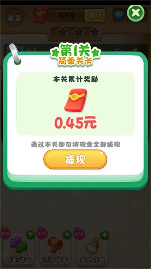 2、把关卡里的钻石全部消除就能通关,还能拿到红包奖励。