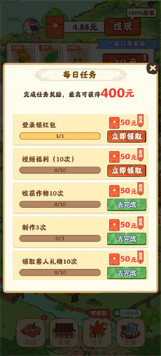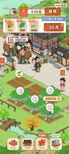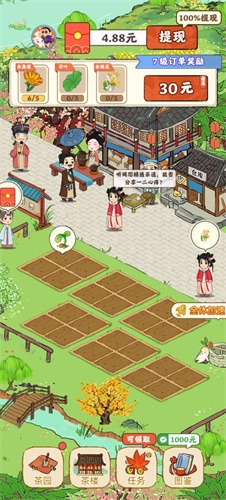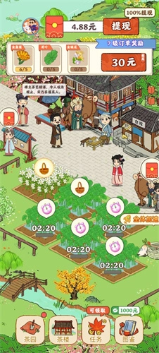 茶香乐园是一款以茶叶种植为主题的休闲经营游戏。在游戏里,玩家每日都能在土地上播撒不同种类的茶叶种子,稍作等待后便可收获茶叶,从而获取丰厚奖励。此外,只要完成相应订单,还能额外领取红包福利。