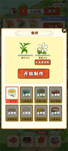3、游戏里的茶叶种类十分丰富,像茉莉、玫瑰、荷叶之类都有,玩家能随意进行种植,操作起来格外简单。