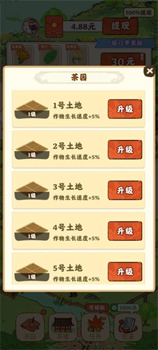 2、土地等级每提升一级,茶叶种子的生长速度就会增加5%,这能节省不少时间,方便进行更多操作。
