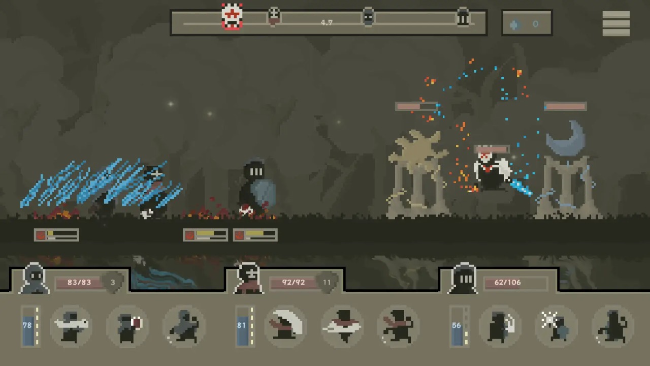 2、进入战斗后顶部的进度条为行动条,当角色走到末端后会自动攻击。