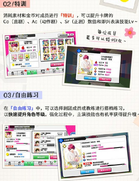 在游戏里,玩家会邂逅20位个性鲜明的剧团成员,和他们一起为满开剧团的未来拼搏。比较特别的是,《满开剧团》里的角色年龄范围很广,人物设定不再只聚焦于当下热门的高中生、大学生群体,而是涵盖了中学生到社会人等不同阶段,各类形象都能找到。