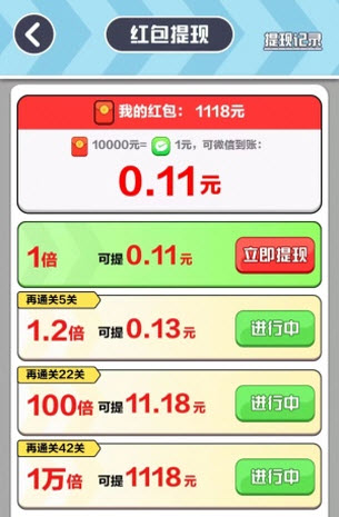 能赚钱。我玩了几分钟提现了一次2毛钱,还提现了一次1毛钱。前面几关可以按照1%比例进行提现,当我完成了3关之后,就要我完成12关可以提现10%比例的收入,这里就不建议大家去玩了。