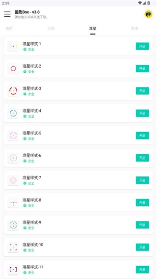 准星界面里有超多不同样式的准星可供选择,点击后面的开启按钮就能使用啦。