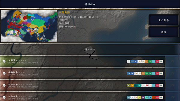 随后选择游玩历史剧本,这里有王莽篡汉、僭越假帝、昭宣之治等多个剧本可供体验。