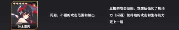 铃木清风的攻击范围与输出能力十分出色,觉醒之后,其攻击能力与生存能力都会得到显著增强。
