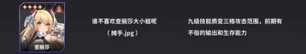 查丽莎具备优秀的攻击范围与生存能力,是一名相当实用的角色。