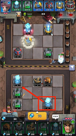 6、将两个相同类型的炮塔进行拖动合成,可以升级成更厉害的炮塔,拥有更高的伤害和更快的射速,从而更快的将僵尸消灭。