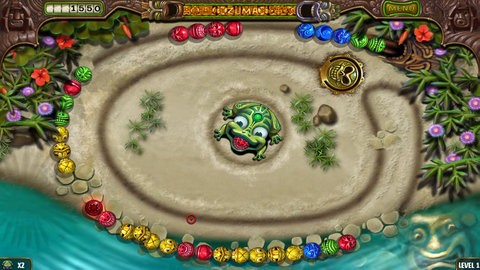 核心Zuma玩法:在祭坛上发射彩色石球,并与轨道上滚动的三个或更多相同颜色的球匹配以消除它们。
