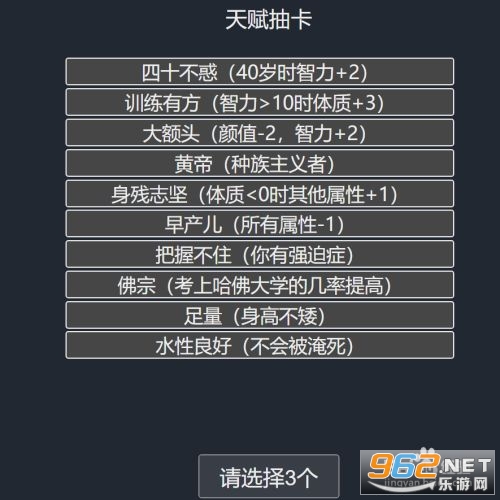 全新的模拟人生游戏,以文字剧情为载体,为玩家构建了一个全新的人生天地。在这里,你可以自由模拟生活,尽情探索心中向往的世界,去做那些你渴望尝试的事情,用每一个独特的选择来书写专属于你的人生轨迹。游戏玩法趣味十足,如果你对此感兴趣,不妨直接进入重开人生模拟器网页版体验一番!