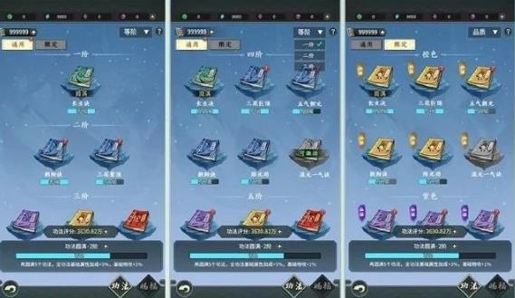 3、功法,修仙之路漫长无尽,每位修士都离不开功法秘籍。领悟功法不仅能提升修士的各项属性,还可借助功法要诀进一步强化已领悟的秘籍。功法的修炼存在修士境界的限制,通常而言,境界要求越高的功法,能够为修士带来的属性增益也就越丰厚。