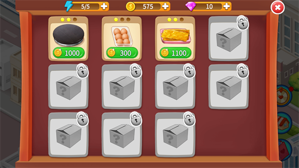 游戏一开始的时候只需要照看一个煎饼摊,和生活中一样,不同的客人会有不同的需求,有的不想要葱花,有的不想要薄脆,你可以按照摊饼、打蛋、放薄脆、放生菜、撒葱花等步骤完成一个煎饼,完成的速度越快,奖励越高。目前楼下的早餐店已经开放了七个大关卡,每种关卡就是一个中国的美食,除了一开始的早餐,还有烧烤和火锅等正餐挑战,并且可以花钱进行设备的购买或者升,唯一不足的是游戏的体力太少,只有5点体力,可以花钻石或者看广告回体力。
