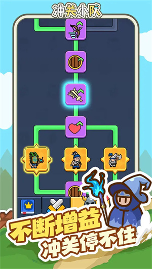 冲关小队是一款结合了运气和策略的小游戏,它以独特的方式将转盘机制融入到游戏的兵团建设中。