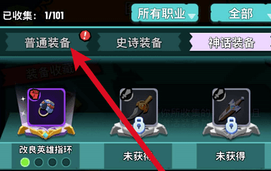 在装备收藏中,点击普通装备。