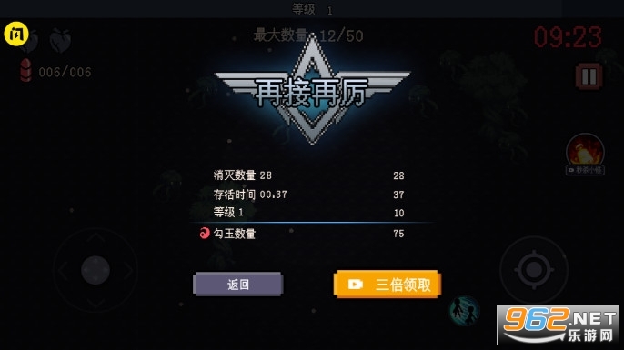 遇到第一个boss时,由于弓弩自带超高击退效果,基本可以追着boss打,直接把它耗死。发育两分钟后会遇到第二个比较笨拙的敌人,只要保持上下走位它就很难击中你。击杀这个敌人后,除了增加召唤伤害的选项外,另外两个都可以选,建议优先选99弹匣上限。剩下的三分钟就进入割草阶段了,甚至可以原地不动,按住鼠标不松手一直转圈射击,只要不头晕就能轻松通关;也可以点出边走边射的技能,体验纯粹的割草快感。