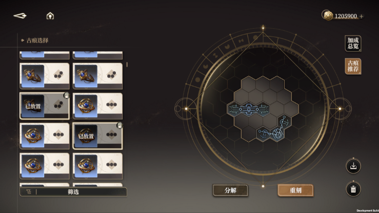 4、古痕在生成时会带有1条随机属性,玩家可以选择相同名字的古痕进行合并(最多2次),合并后的古痕可以通过反向拆解进行调整。