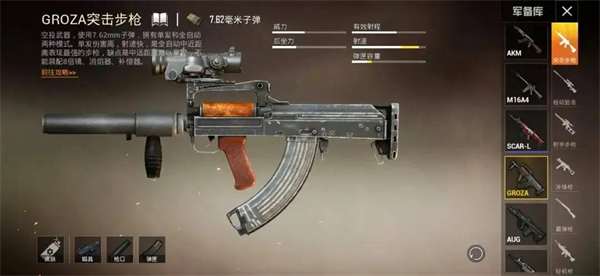 Groza堪称综合性能顶尖的近战利器,它的输出能力能全方位压制其他步枪,即便在远程交火时,后坐力也比AKM和M762更易控制——这也让它成了AKM和M762使用者遇到就忍不住要替换的“梦中情枪”。之前和队友开黑时用【上麦】语音沟通,那位高手队友还教过我它的用法。不过它也有个小缺憾:腰射扩散范围比较大,要是不想在实战中“手忙脚乱”,还是得多练开镜拉枪的技巧,才能把它的潜力完全发挥出来。