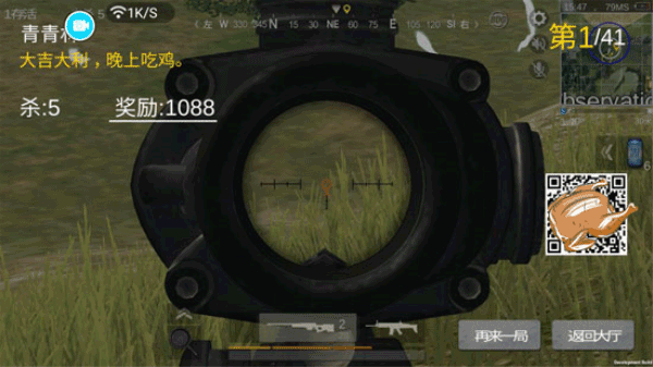 7、游戏里居然捡到了马格南AWM(看来追梦真的有可能实现啊)!虽说整场下来就打中过一枪,不过最后还是把对手淘汰了,顺利拿下了第一名。