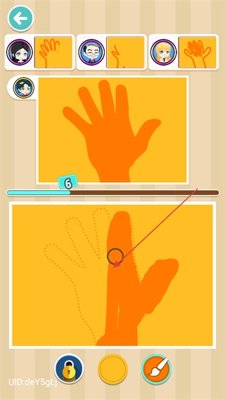 1、根据上方手掌图案,用下方工具沿着虚线绘制手掌,完成画作。