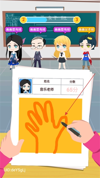 3、提交画作后,查看音乐老师的作品评分65分,完成该轮评分。