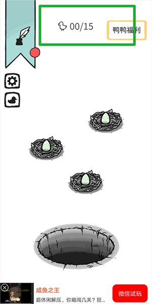 3、创意互动:玩家把鸭子投进洞穴,就能解锁新的鸭蛋,这种充满创意的互动形式,让游戏过程变得更丰富、更有趣。