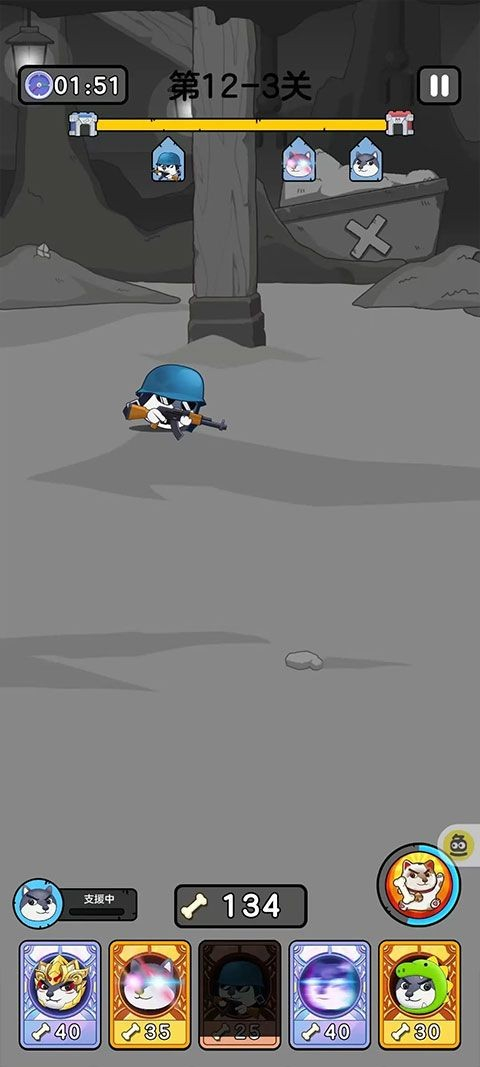 就像卡牌游戏,不过在此基础上融入了塔防元素。双方摆放自己持有的卡牌,直至对方的塔被攻破即为获胜。实际上,这种玩法在众多游戏里都有呈现。游戏中的卡牌并非随意就能放置,得在拥有骨头的条件下,才能打出自己的卡片。而且卡片上的“狗头”各不相同,每只“狗子”都有独特作用,玩家要合理搭配这些“狗子”,明确谁来承受伤害、谁负责输出、谁充当奶妈,这些都很关键。游戏过程中,不能只看到哪个卡牌能点就点哪个,一定要对自己的卡牌有合理的放置顺序,如此一来,胜率会大幅提升,通关也会更为轻松。