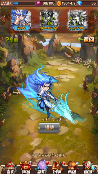 4、挑战游戏里的副本可以获得各种各样的奖励,不过需要消耗体力