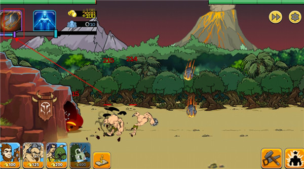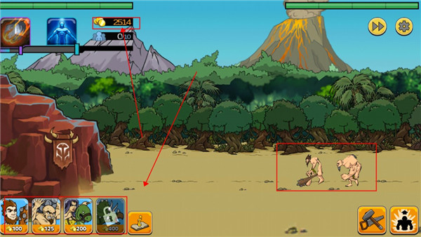 3、敌方会源源不断的召唤士兵攻击你,你需要点击左下角选择士兵出来应敌对战,上面的金币数量决定你能召唤士兵的等级与数量。