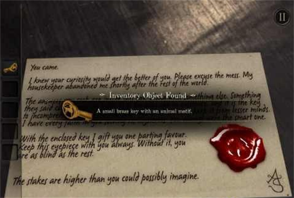 1、先在场景里晃一晃,然后双击信封,拖出信件,印章处有一把漂亮的钥匙。
