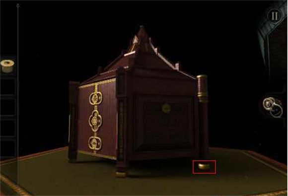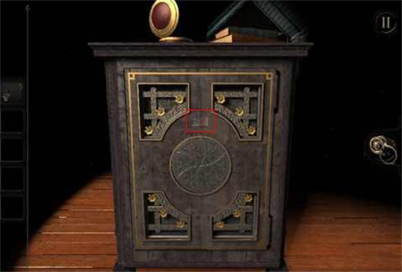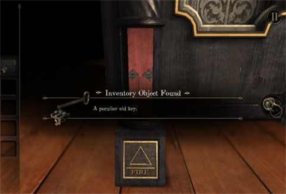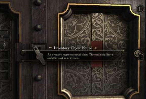 5、钥匙可以旋转成不同的形状,对应不同的钥匙孔。先看侧面,有个地方缺了一块的样子,推一推发现有个钥匙孔,用相应形状的钥匙打开,拿到奇怪的扳手。