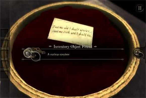 3、试用了一下目镜,没有镜片,先不管它。双击纸片,看到谜语