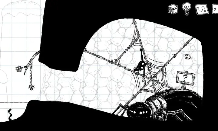 2、关卡设在放大的玩具箱里,你会遇到摇摆的绳子和旋转的纸风车,需要看准时机通过。