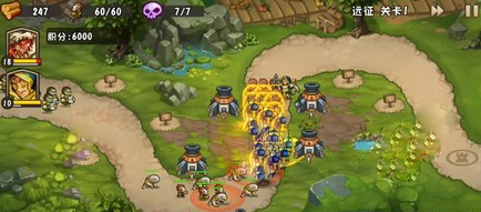 第三波:配置一座二级火炮。这波主要是兽人勇士,地精医生不多,第二部队的剑兵有牧师的支援,能够轻松地消灭这波怪物。