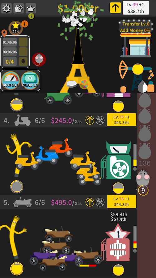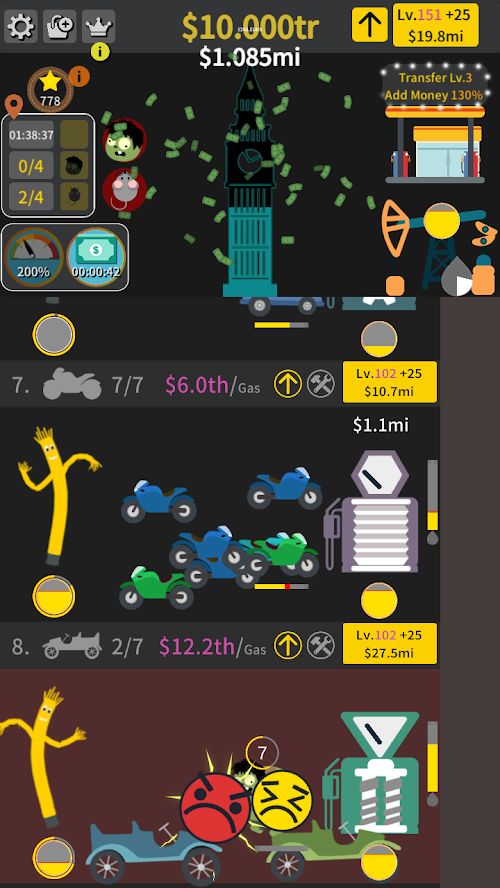 放置加油站大亨安卓版(Idle Gas Station)是一款主打休闲风格的加油站模拟经营游戏。在这款游戏里,玩家将从运营一家小小的加油站起步积累财富。为了持续吸引更多顾客前来,你需要不断升级加油站的各类设施、优化服务质量,并且提供更优质的汽油。之后,你可以逐步扩张自己的产业版图,把石油业务拓展到全球各地,最终成为名副其实的加油站大亨!