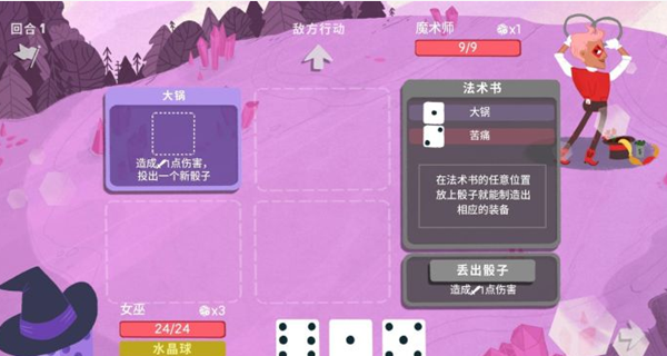 游戏里的骰子玩法和我们操控的战士息息相关。这是由于每个战士对应着不同职业,比如女巫、机器人之类,而每个职业使用骰子的规则都不一样。当我们选择女巫这个职业时,屏幕中央会出现一片空白区域。我们得先把骰子放置在这些空白区域上,让它们获得特定的效果。举个例子,点数为1的骰子能让空白区域对敌人施加火焰伤害。这种层出不穷的新奇体验,显然是游戏最吸引人的亮点之一。