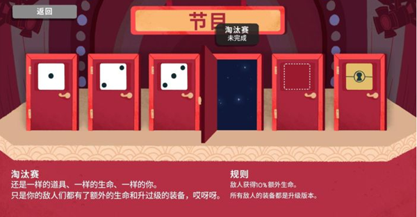 击败BOSS并非游戏的终点,我们仍能继续挑战以解锁更多关卡。这些关卡有着各自独特的设计,被称作一个个“节目”。例如,某个“节目”的规则是角色每升一级就会扣除两点生命值。要是我们通过消灭地图上的所有敌人来提升等级、增加骰子数量,那么本就不多的血量便会成为致命弱点。这也导致地下城中几乎不存在能通用的固定策略。