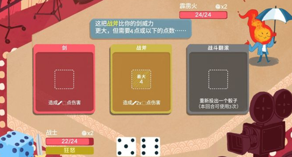 要是我们先把点数为3的骰子加1,再把它放进“战斧”里,就能额外打出两点伤害。