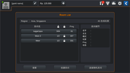 4、选好服务器后,既可以创建房间等待其他玩家进入,也可以选择加入他人已有的房间。