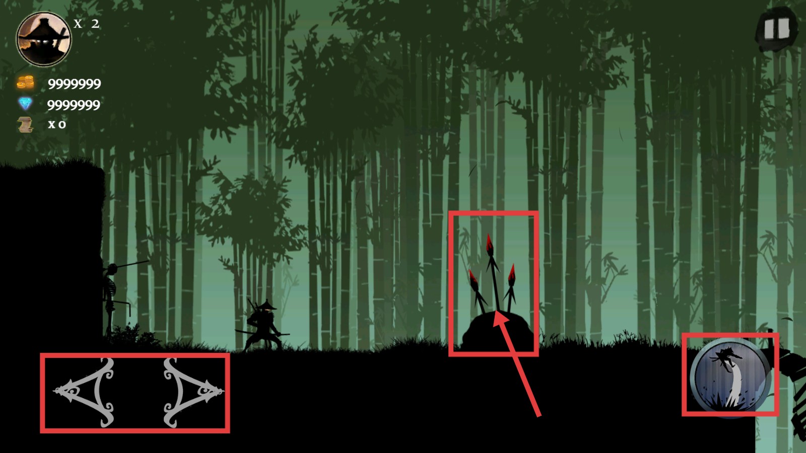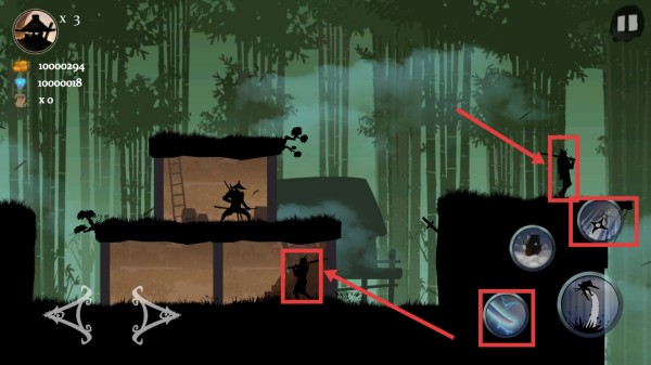 3、当遇到敌方武士角色时,可点击右侧的技能按钮(比如飞镖、闪电攻击这类)展开反击,成功击败敌人能够增加连击次数,从而积累战斗方面的收益。